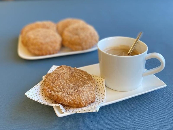 Appelschijf verpakt in bladerdeeg met kaneel en suiker.